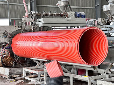 通過(guò)螺旋纏繞機(jī)將FRPP帶材纏繞成管狀,形成外壁為螺形加強(qiáng)肋、內(nèi)壁光滑的結(jié)構(gòu)。
